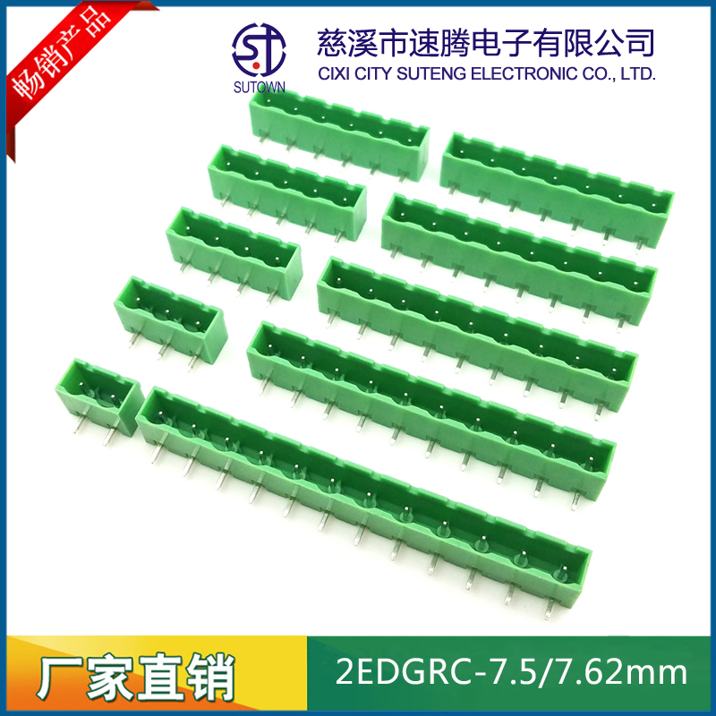 Material and Plating Spacing:7.5/7.62mm Plastic parts;PA66,UL94V-0 Cage:Brass,Tin plating Screw:M3.0,Steel,Zn Plating Terminal:Phosphor bronze,Nickel plating Electrical performance Rated voltage:300V Rated current:15A Ambient temperature:-40℃~+105℃ MAX Soldering:+250℃,5s Withstanding Voltage:AC1500V/1Min Contact resistance:20mΩ Insulation resistance:5000MΩ/1000V Wire diameter:28-12AWG 2.5mm2 Torque:0.4Nm Strip length:7-8mm