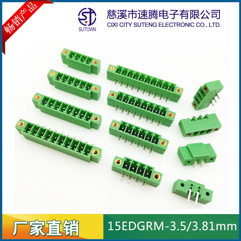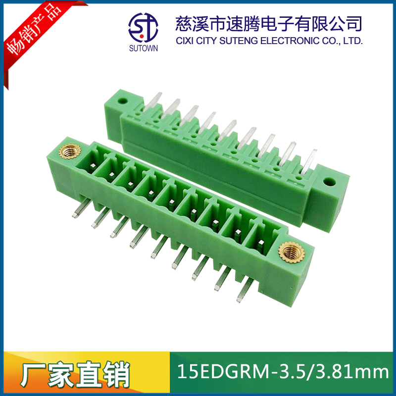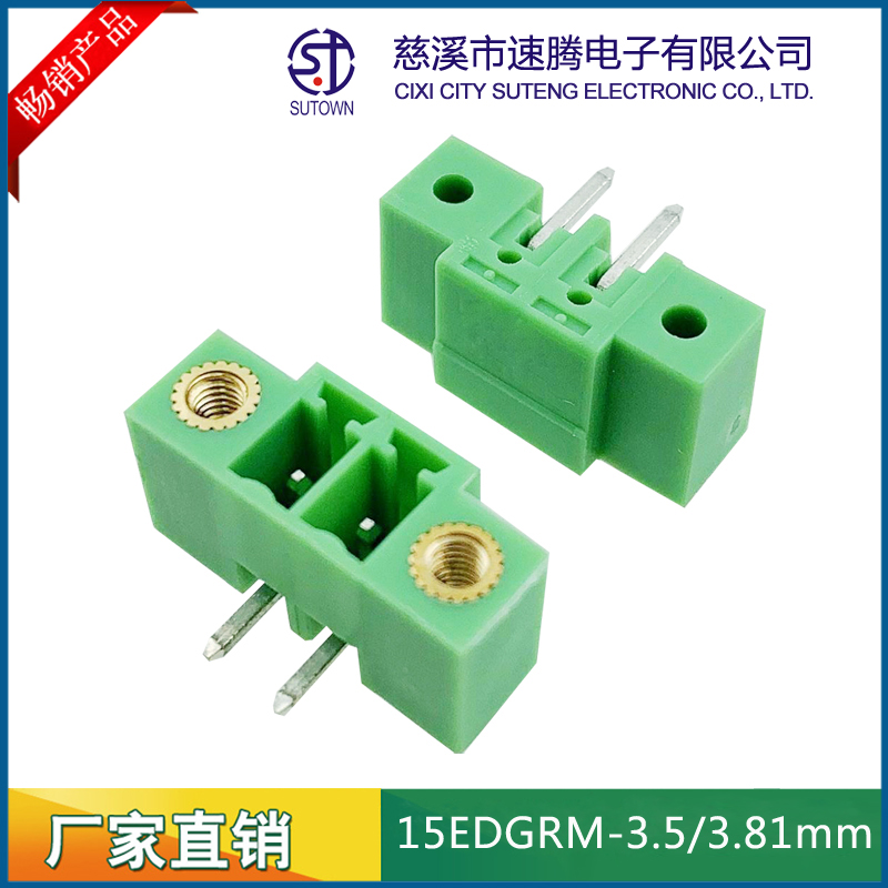 材質(zhì)及規(guī)格處理間距:3.5/3.81mm塑件:PA66 UL94V-0觸點材料:磷青銅,鍍鎳螺絲:鋼,M2.0.鍍鎳機械性能額定電壓:300V額定電流:8A使用溫度:-40℃~+105℃瞬時溫度:+250℃,5s耐電壓:AC2000V/Min接觸電阻:20mΩ絕緣電阻:5000MΩ/1000V使用線徑:28-16AWG 1.5mm2扭矩:0.2Nm剝線長度:6-7mm
